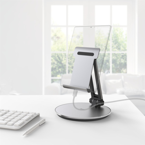 • možnost nastavení úhlu ve dvou kloubech pro ideální polohu zařízení; např. naplocho pro surfování na internetu a psaní, kolmý pro fotografie a videa
