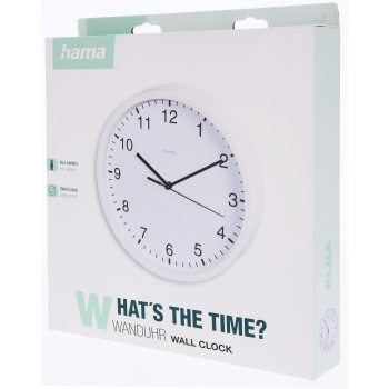 Hama Elba jsou elegantní nástěnné hodiny s analogovým zobrazením času, které se vyznačují tichým chodem bez rušivého tikání. Díky svému jednoduchému bílému designu s černými arabskými číslicemi se hodí do každého interiéru – od domácnosti až po kancelář.