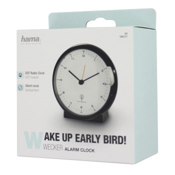 Hama Elegance Pro, budík řízený rádiovým signálem, tichý chod, černý