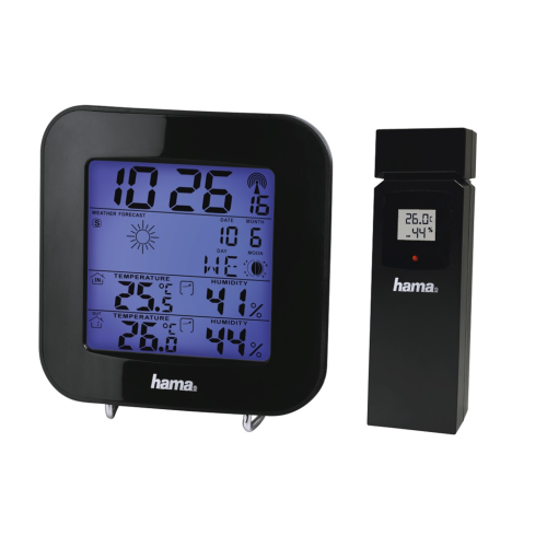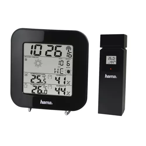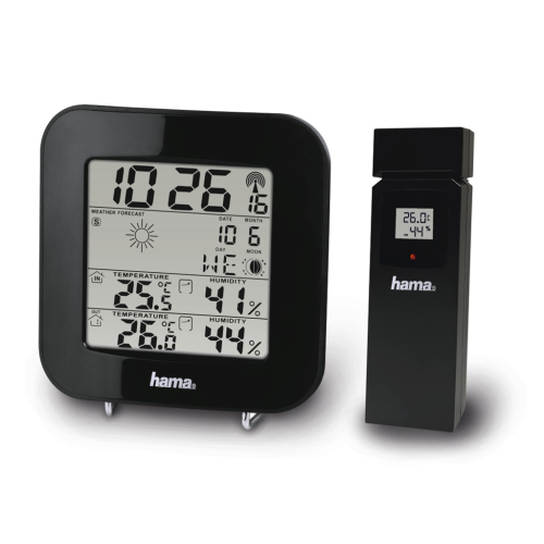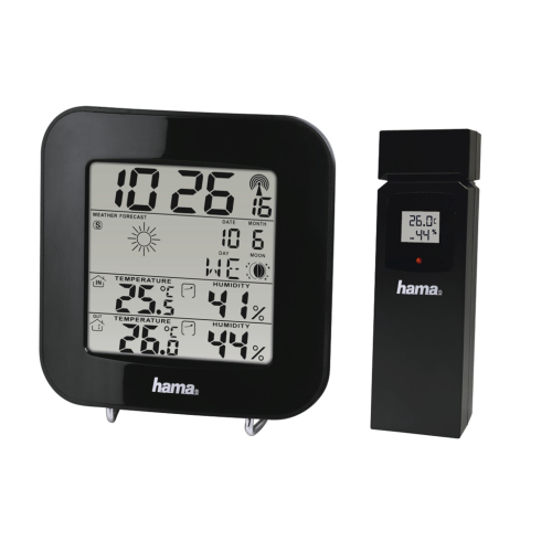 - digitální meteostanice (základna + bezdrátový senzor; 433 MHz) - zobrazení venkovní a vnitřní teploty a vlhkosti vzduchu, předpovědi počasí, fáze měsíce, data a času - hodiny řízené rádiovým signálem …