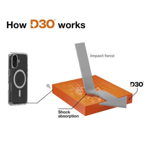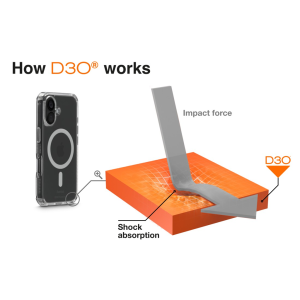 D3O® je unikátní inovativní materiál, který je téměř nezničitelný. Tento materiál zaručí i při minimální tloušťce krytu maximální ochranu zařízení při nárazech, pádech a úderech, a to dokonce i při pádu z výšky 3,5 m. Zároveň ale vůbec neovlivní používání a ovládání zařízení. Tvrdost 4H zaručuje mimořádnou odolnost vůči poškrábání. Díky použitým materiálům zůstane kryt stále čirý a nikde nezežloutne, jak se to stává u běžných krytů.