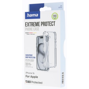 Hama Extreme Protect, kryt pro Apple iPhone 16, materiál D3O®, nežloutne, průhledný