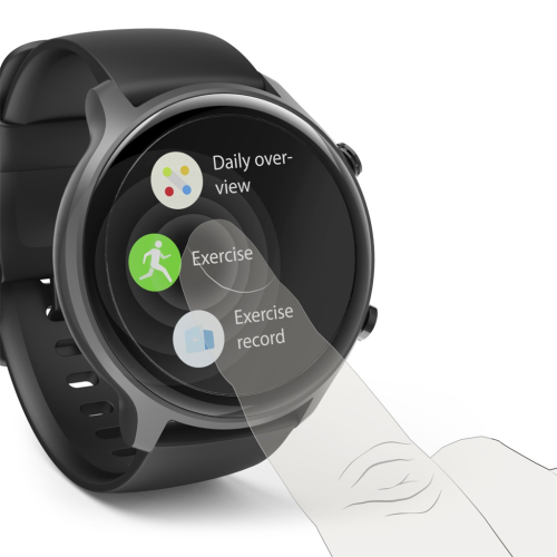 • uživatelsky přívětivý plně barevný dotykový LCD displej 1,28" pro rychlý přehled všech funkcí; s podsvícením