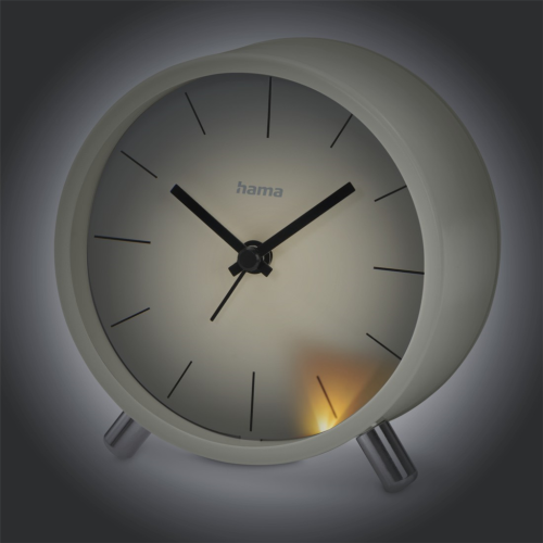 Hama Flores, budík řízený rádiovým signálem, průměr 11 cm, tichý chod, podsvícení, šedobéžový