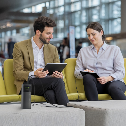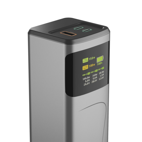 Poznámka: Powerbanka má celkový výstupní výkon max. 150 W. Připojíte-li dvě zařízení k oběma USB-C zásuvkám, výkon každé zásuvky bude 65 W. Připojíte-li zařízení ke všem třem zásuvkám, výkon každé USB-C zásuvky bude 65 W a USB-A zásuvky 18 W.