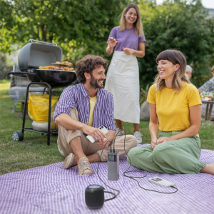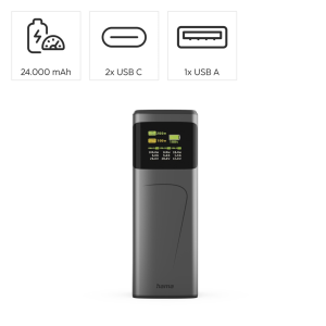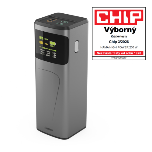 Poznámka: Powerbanka má celkový výstupní výkon max. 200 W. Připojíte-li dvě zařízení k oběma USB-C zásuvkám, výkon každé zásuvky bude 100 W. Připojíte-li zařízení ke všem třem zásuvkám, výkon se rozdělí na 100 W pro jednu USB-C zásuvku, 65 W pro druhou USB-C a 18 W pro USB-A zásuvku.