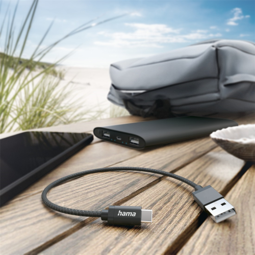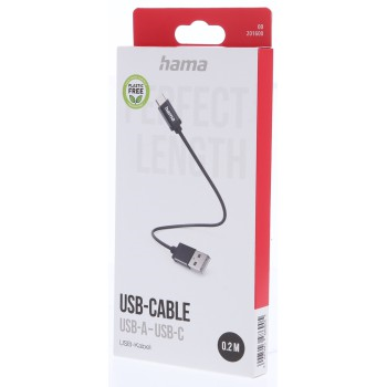 Hama kabel USB-C 2.0 typ A-C 0,2 m, opletený, černý