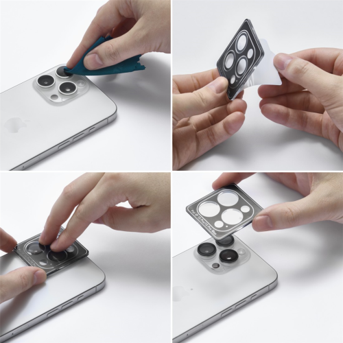 • snadná aplikace ve 3 krocích: vyčistěte sklo čoček fotoaparátu, upevněte aplikační pomůcku na fotoaparát a následně umístěte na vrch ochranné skla