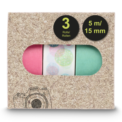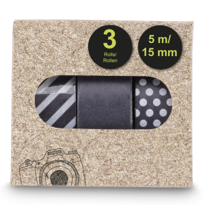 • každý set obsahuje tři lepící pásky s různými vzory nebo barvami