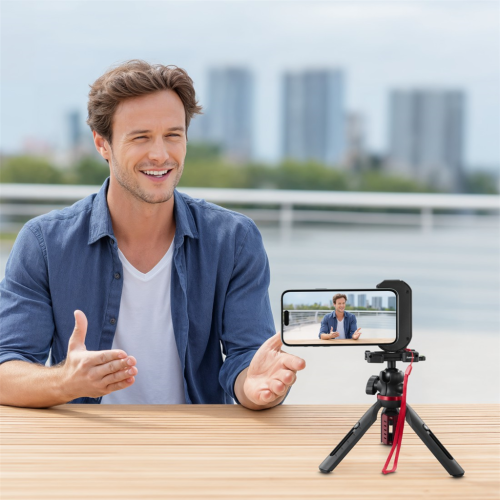 možnost použití jako kamerová rukojeť nebo stolní držák, v portrétovém formátu (na výšku) nebo horizontálním formátu (na šířku)