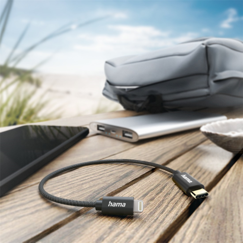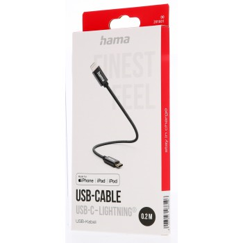 Hama MFi USB-C Lightning kabel pro Apple, 0,2 m, opletený, černý