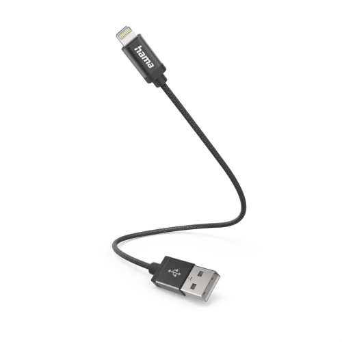 Hama MFi USB kabel pro Apple, USB-A Lightning, 0,2 m, opletený, černý