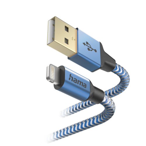 Hama MFi USB kabel Reflective pro Apple, USB-A Lightning 1,5 m, modrý