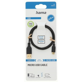 Hama micro USB 2.0 kabel Flexi-Slim 0,75 m, černý