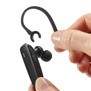 ušní oblouček ve 2 velikostech (S, L) a silikonové špunty do uší ve 3 velikostech (S, M, L), takže headset pohodlně a bezpečně drží na/v každém uchu