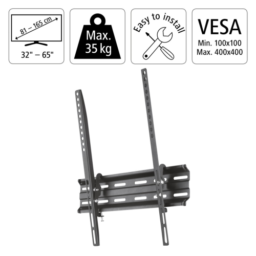 - naklápěcí držák pro TV obrazovky s úhlopříčkou cca 32 až 65 palců (81 až 165 cm) - VESA max. 400x400, nastavitelná ramena pro jakoukoliv menší rozteč závitů - snadné zavěšení TV pomocí dvou ramen - …