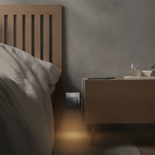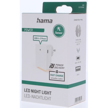 Hama noční/orientační LED světlo, do zásuvky, 1x USB-A, 1x USB-C, soumrakový senzor