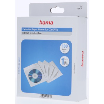 Hama papírové obaly pro CD/DVD, bílé, krabička na zavěšení, balení 100 ks (cena za balení)
