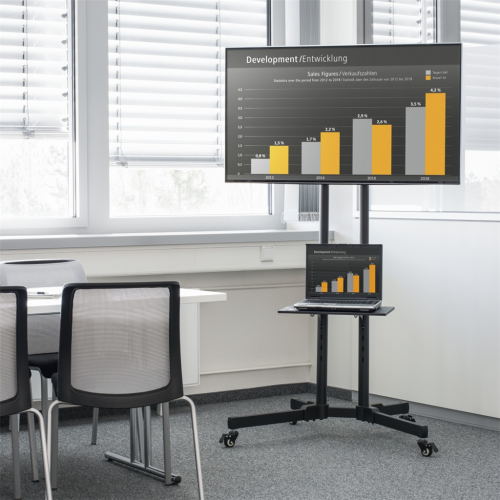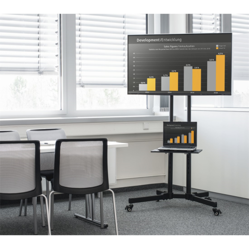 • samostatně stojící podlahový stojan na kolečkách s naklápěcím televizním držákem