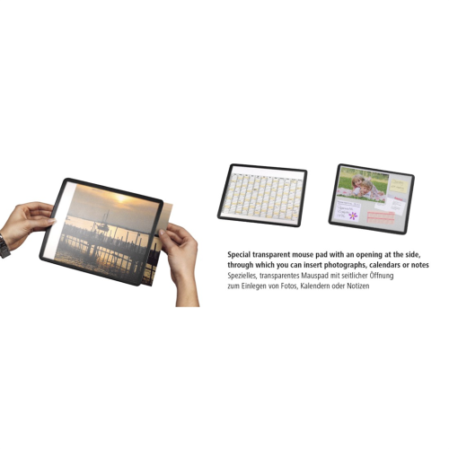 - podložka pod myš pro snadný a přesný pohyb myši - prostor pro individualitu: boční otvor pro vložení fotografií, kalendáře nebo poznámkových listů - transparentní povrch s černým okrajem - vhodná pro …