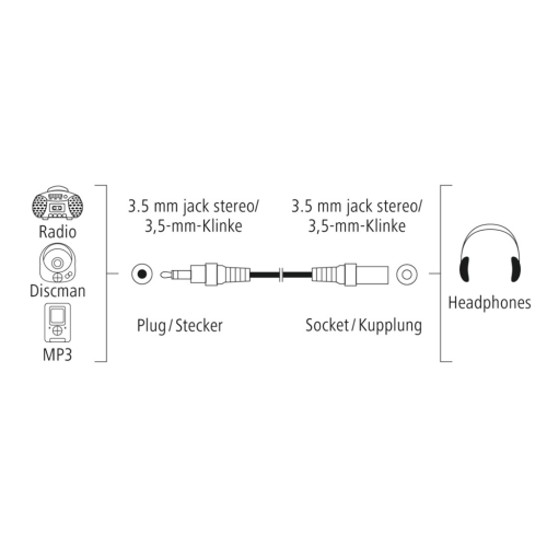 • kabel pro přenos analogového audio stereo signálu, např. pro prodloužení kabelu sluchátek