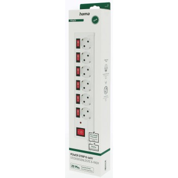 Hama prodlužovací přívod s přepěťovou ochranou, 6 zásuvek schuko, 7 vypínačů, 1,4 m, bílá