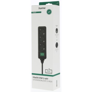 Hama prodlužovací přívod s vypínačem, 3x zásuvka schuko, 3 m, černý