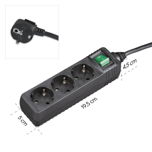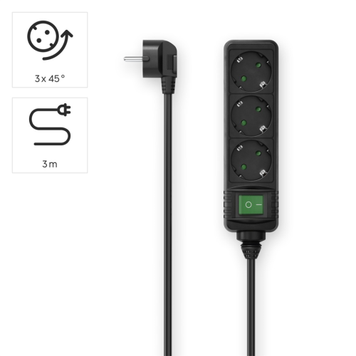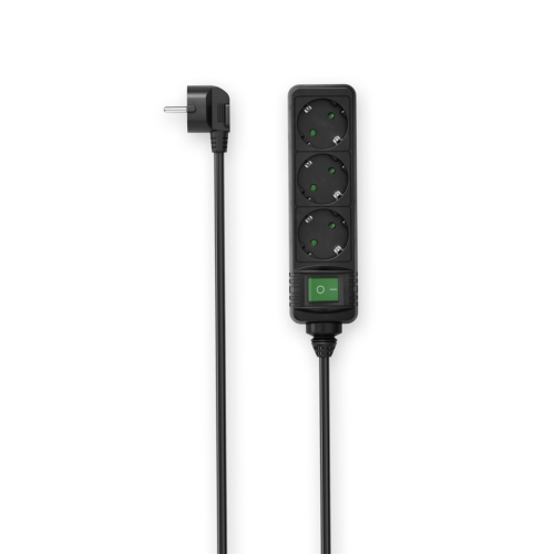 - prodlužovací přívod se třemi zásuvkami a vypínačem - německý standard zásuvek schuko (zemnící kontakty na okraji), vhodné pro běžně používané unischuko vidlice (nevhodné pro starší kulaté vidlice bez …