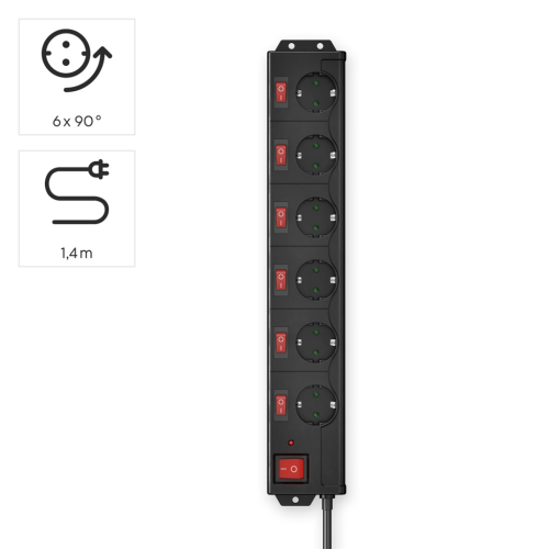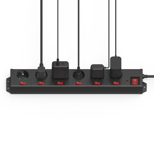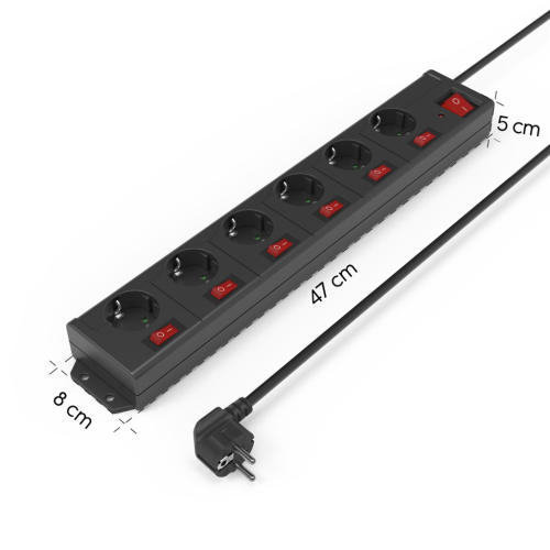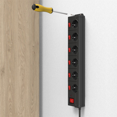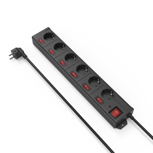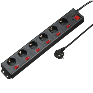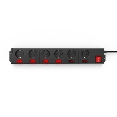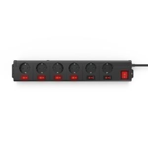 - 6zásuvkový prodlužovací přívod se samostatným vypínačem každé zásuvky