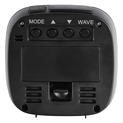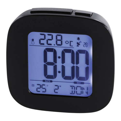 • digitální zobrazení času, času buzení, data (den/měsíc) a teploty (v °C nebo °F)