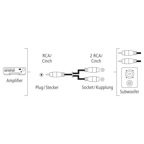 • vhodné např. pro připojení subwooferu k zesilovači pomocí 2 cinch (stereo) kabelu