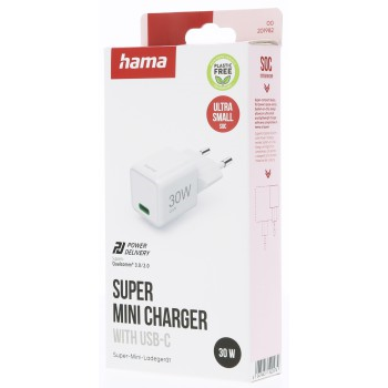 Hama rychlá USB nabíječka, USB-C PD/QC 30 W, super-mini