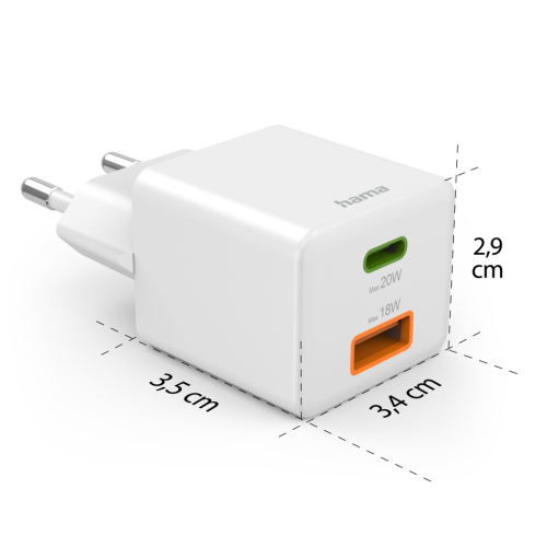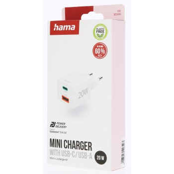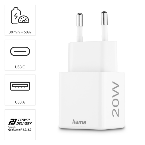 Hama rychlá USB nabíječka USB-C + USB-A, PD/QC, 20 W