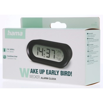 Hama Samos, digitální budík, zobrazení teploty, data, vč. baterií, černý