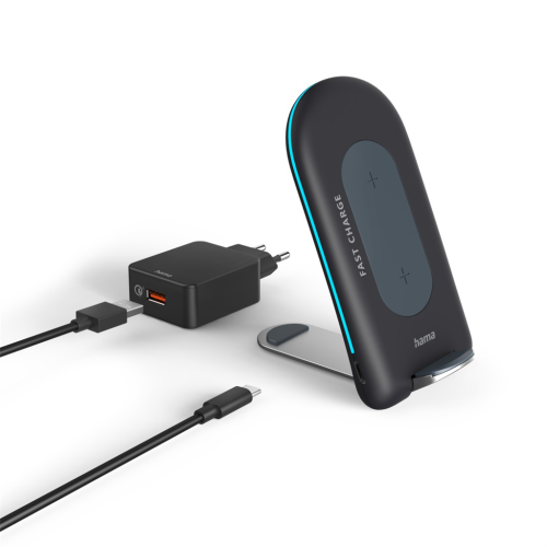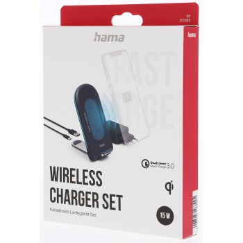 Hama set bezdrátová nabíječka/stojánek Qi FC15S, 15 W + rychlá síťová nabíječka QC 3.0