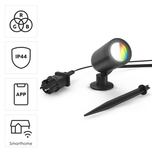 • smart LED zahradní osvětlení s reflektorem: jednoduchý zdroj světla, efektové osvětlení nebo speciální světelné scény pomocí aplikace nebo hlasových asistentů