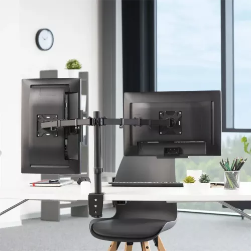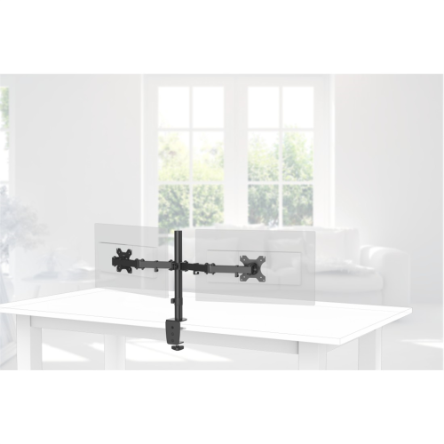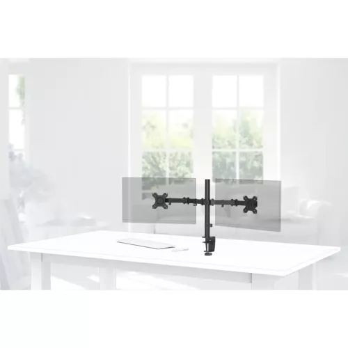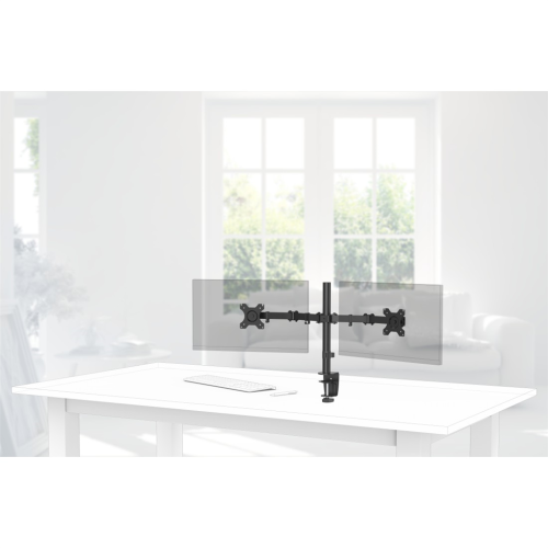 Držák dvou monitorů do úhlopříčky 32", upevnění ke stolu, 2 ramena, VESA max 100x100, včetně nářadí pro montáž