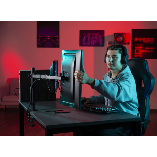 • snadná instalace: samostatný VESA modul se upevní k monitoru a poté jednoduše nasadí na rameno držáku