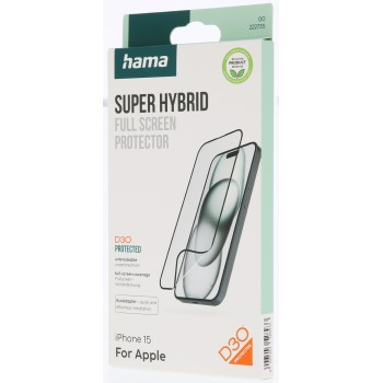Hama Super Hybrid, nerozbitné ochranné sklo na displej pro Apple iPhone 15, licence D3O - VÝPRODEJ