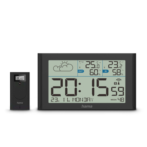 Hama Sylt, meteostanice, bezdrátový senzor, DCF hodiny, teplota, vlhkost, počasí, baterie, černá