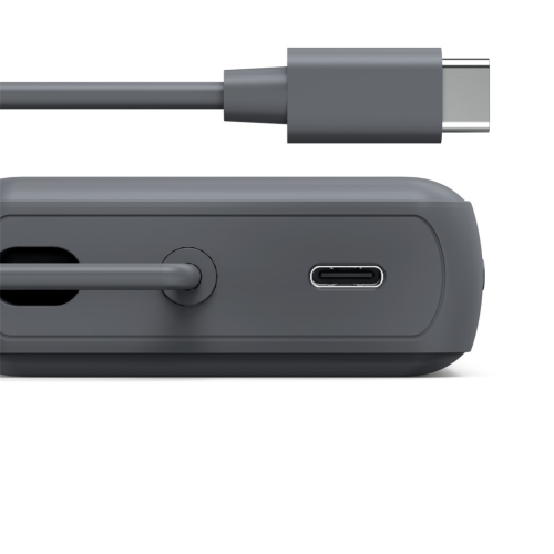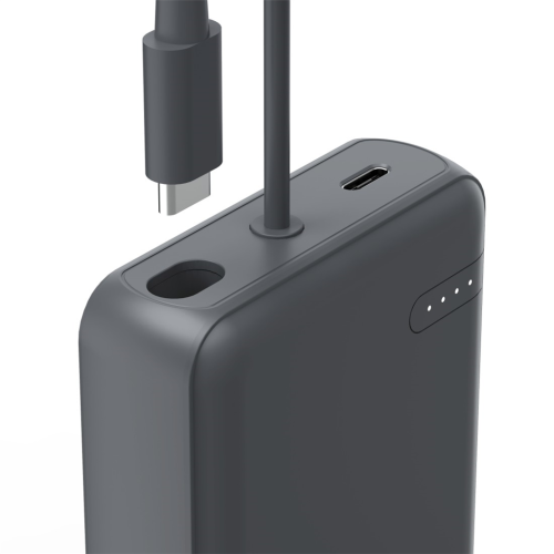 • integrovaný kabel USB-C s délkou 6,5 cm pro nabití powerbanky (IN) nebo nabití zařízení (OUT); pokud jej nepoužíváte, konektor můžete skrýt do vedlejšího otvoru