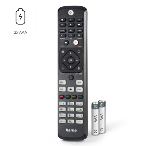univerzální náhrada 1:1 za ovladače k televizorům Philips, s funkcemi originálního ovladače připravený k použití s nejběžnějšími TV Philips, plus programovací kódy pro méně obvyklé modely funkce učení …