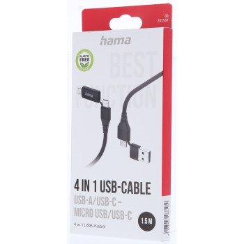 Hama USB kabel 4v1: USB-C, USB-A - USB-C, micro-USB, 1,5 m