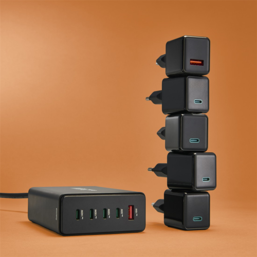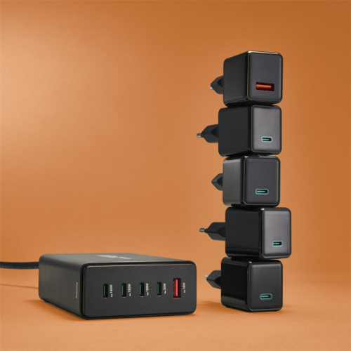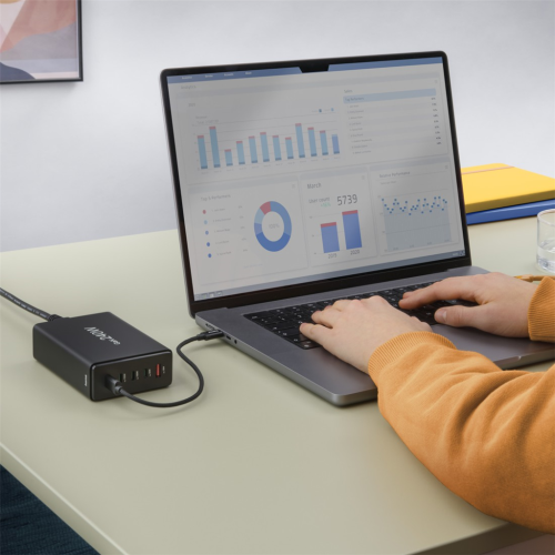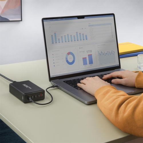 • výkon až 140 W pro jedno zařízení umožňuje nabíjet i náročné notebooky s napájením USB PD