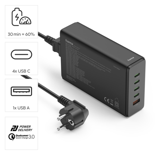 Hama USB nabíjecí stanice GaN, 4x USB-C PD, 1x USB-A QC, 240 W