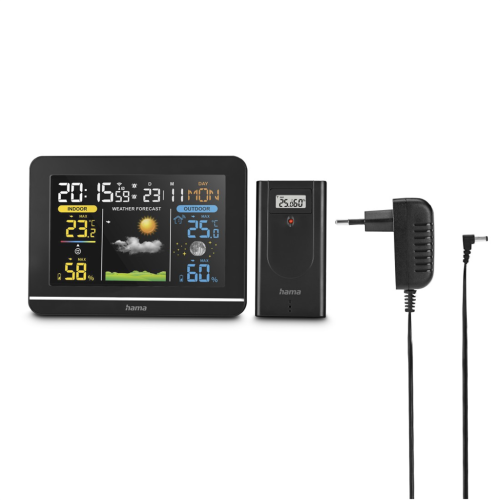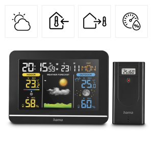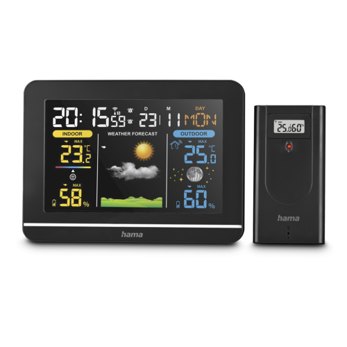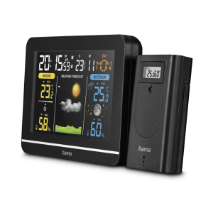 - dvoudílný set: základna + bezdrátový senzor; s barevným displejem a intuitivním ovládáním - pro digitální zobrazení venkovní a vnitřní teploty a vlhkosti vzduchu, předpovědi počasí, fáze měsíce, data, …