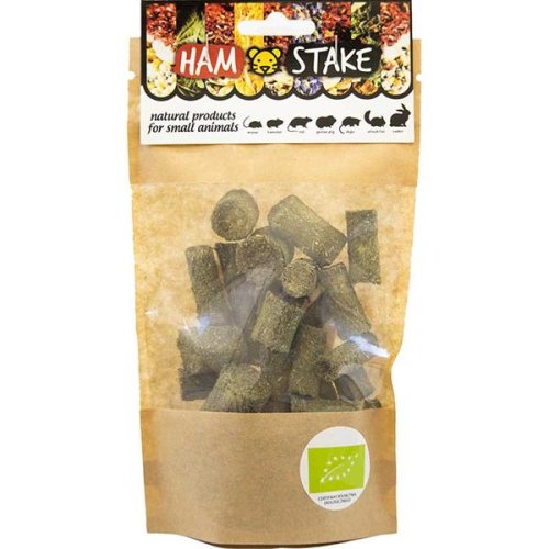 Bezobilný, 100 % přírodní pamlsek pro hlodavé drobné savce. Popis Grain free pamlsky Ham-Stake s kousky topinamburových stonků obalených voňavou sušenou petrželkou jsou ideální chutnou, křupavou a zdravou svačinkou pro králíky, morčata, osmáky, činčily, křečky, potkany, myši a pískomily. Topinamburové stonky a petrželová nať jsou vhodným zdrojem vlákniny a obsahují množství přirozeně se vyskytujících vitamínů, minerálů a dalších zdraví prospěšných látek. Topinambur upravuje zažívání, petrželka čistí organizmus, je močopudná, tlumí záněty a posiluje imunitu (vitamín C). Přednosti pamlsků Ham-Stake: