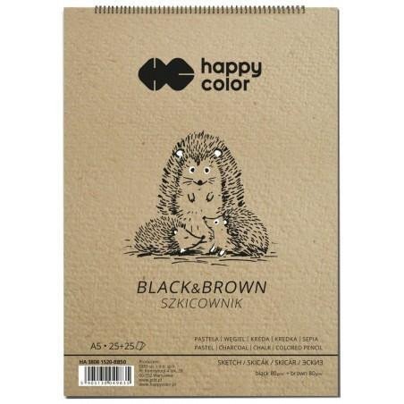 ? Skicák se spirálou na pevném kartonovém podkladu se dvěma druhy papíru - černým a hnědým ? Doporučeno pro skici a kresby pastelkami, pastely, s křídou a dřevěným uhlím, stejně jako práce s použitím metalických fixů a gelových per ? Skvělé pro použití v plenéru ? Hmotnost 80g ? 50 listů: 25 černých, 25 hnědých ? 5 ks v balení