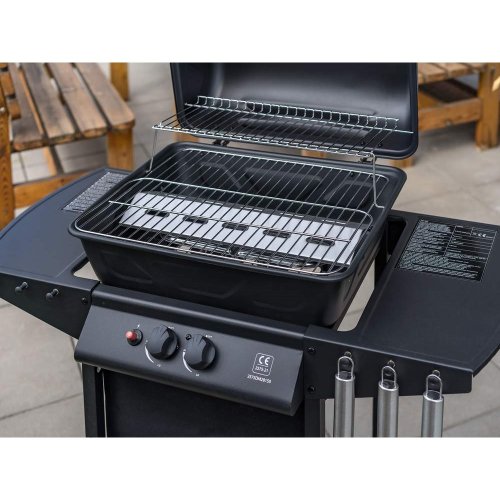 Velmi praktický a elegantní plynový gril KIMBERLEY se dvěma hořáky pro snadnou přípravu grilovaných pokrmů. Kvalitní provedení s poklopem umožňuje uzavřít spodní část grilu a díky tomu nemůže teplo tak rychle uniknout ven. Podobně jako v pečící troubě se pokrm propeče rovnoměrně ze všech stran. Gril má nahřívací mřížku vhodnou pro odkládání opečených potravin a nebo rozpékání pečiva. Gril můžete použít na grilování i bez víka. Pomocí dvou plastových koleček dopravíte gril snadno na potřebné místo na vaší zahradě či terase. Komfort vám dopřejí i dvě odkládací plochy se třemi háčky. Gril má teploměr v poklopu a přední odkládací košík. Gril se zapaluje pomocí piezo zapalování. Rozměry grilu: 97,3 x 53 x 102 cm. Výška pracovní plochy je 86 cm. Plocha roštu: 48,5 × 37,5 cm - 1800 cm2. Balení neobsahuje: regulátor + PVC hadici. Je třeba dokoupit ve specializovaných prodejnách.