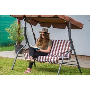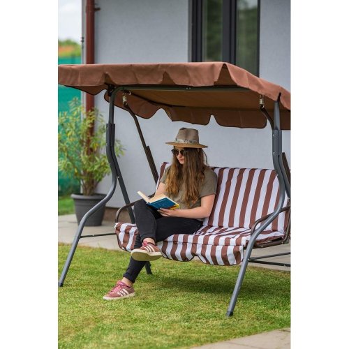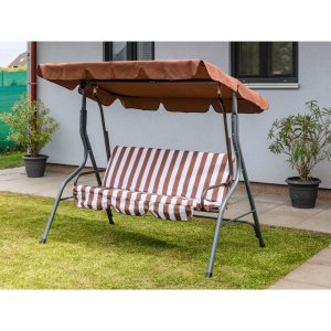 Zahradní houpačka PANAMA pro 3 osoby, je vhodná na vaší zahradu či terasu, má kovovou konstrukci ošetřenou práškovým lakováním a sedák z polyesteru. Rozměry houpačky: 170 x 110 x 153 cm, výška sedáku 6 cm, nosnost 220 kg.